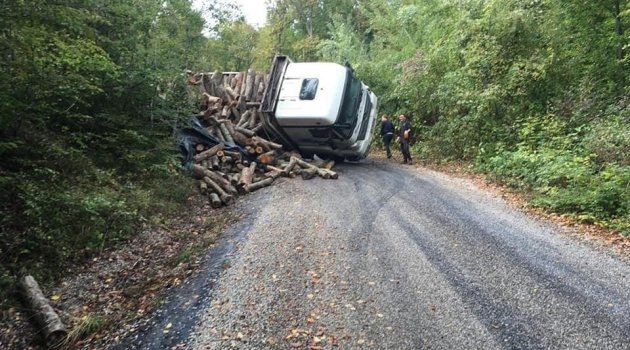 Karabük'ün Yenice ilçesinde odun yüklü kamyon sürücüsünün direksiyon hakimiyetini kaybetmesi sonucu devrildi.