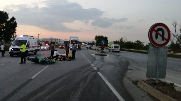 Edinilen bilgiye göre, Kubilay K. yönetimindeki 16 ACF 306 plakalı motosiklet, Bursa-Balıkesir karayolunun Karacabey yakınlarında Bursa istikamete dönüş yapmak isteyen sürücü 10 NE 959 plakalı Dursun D. yönetimindeki kamyonun sol arka yan kısmına çarptı. Kazada, 16 ACF 306 plakalı motosikleti süren Kubilay K. ve motosikletin arkasında bulunan Melih A. yaralandı. Yaralılar, olay yerine gelen 112 Acil Servis ekiplerince Karacabey Devlet Hastanesine kaldırılarak tedavi altına alındı.