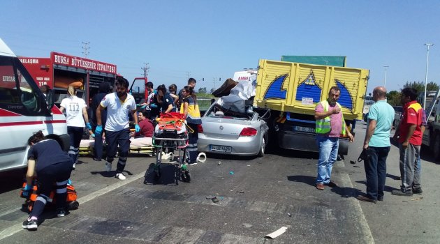 Edinilen bilgiye göre, Alican Ar idaresindeki 34 UZ 4426 plakalı otomobil, Balıkesir’den Bursa’ya doğru seyir halindeyken Bakırköy yakınlarında kırmızı ışıkta bekleyen 16 DC 264 plakalı İbrahim Yavuz idaresindeki kamyona arkadan çarptı.