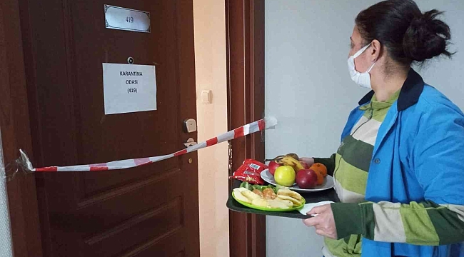Yeni tip korona virüs (Covid-19) pandemisine yakalanan öğrencilere yurt odalarında 5 günlük karantina süresi uygulanıyor. Bu karantina süresince öğrencilere yemek hizmeti veriliyor. Yemek menüsünde, Covid-19'a karşı etkili yiyecek, meyve ve sebzelerin olduğu belirtildi.