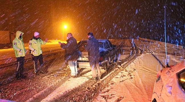 Malatya-Kayseri karayolu Darende İlçesinde kar nedeniyle gece bir süre ulaşıma kapanan kara yolunda sürücü ve vatandaşlara ikramda bulunuldu.