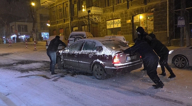 Kars’ta akşam saatlerinde başlayan kar yağışı ve tipi hayatı durma noktasına getirdi. Kar ile birlikte buzlanan yollarda çok sayıda araç kaldı. Kayan araçlar ise kameralara yansıdı. Buzlanan yollarda Atatürk Caddesi yokuşunda kalan araçların bir kısmı geri dönmek zorunda kalırken, birçok araç ise vatandaşların yarımıyla yokuşu çıktı.