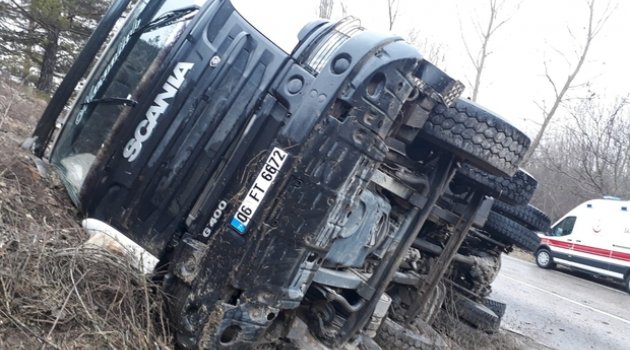 Edinilen bilgiye göre, Daday ilçesine bağlı Aksu köyünde Özaydın Tümer (42) yönetimindeki 06 FT 66 72 plakalı hafriyat kamyonu, yolun kayganlaşması sonucu yoldan çıkarak devrildi.