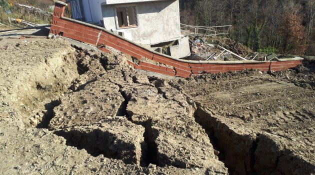 Kastamonu’nun Cide ilçesinde hafriyat döküm alanında meydana gelen heyelan nedeniyle bir evin temeli ve istinat duvarı zarar gördü.