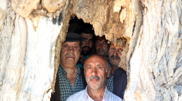 Alanyurt köyü sakinlerinden Ahmet Duldut, ağacın yaklaşık 400 yıllık olduğunu belirterek, “Dedelerimiz Doğanşar ilçesinden göçerek köyümüzü kurmuş. Bu ağacın yaşı köyümüzle eşittir. Yaklaşık 350-400 yıllık olduğunu tahmin ediyoruz. İçine 5 kişi sığdığı gibi çevresini 5 kişi anca sarabildik” dedi.