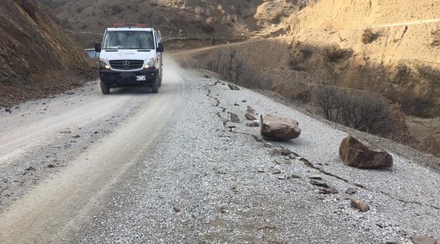 Elazığ’ın Sivrice ilçesinde yaşanan 6,8 büyüklüğündeki depremde Malatya’nın Doğanyol ilçesinde 4 vatandaş hayatını kaybederken 318 kişi de yaralandı. Şuana kadar toplamda 526 konutun ağır hasar gördüğü Malatya’da, Doğanyol ilçesinde bazı mahalle yolları da heyelan nedeniyle kapandı. Şiddetli depremin ardından çok sayıda mahallenin ulaşımını sağlayan stabilize yolda oluşan heyelan nedeniyle kaya parçaları yolu kapadı. Dev kaya parçalarının düştüğü yolda, depremin yol açtığı yarıklar da depremin şiddetin gün yüzüne çıkardı. Yolda kaya parçaları sürücülerin ilerlemesine engel olurken, yolu kullanan bölge halkı, bazı bölgelerde yol kenarlarında da çökme tehlikesi olduğunu söyledi.