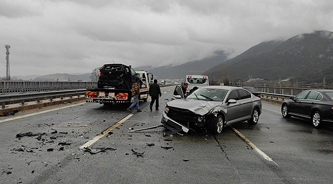 Edinilen bilgiye göre kaza, saat 15.30 sularında Kestel otobanı Barakfakih mevkiinde meydana geldi. Yağmur yağışı sebebiyle 26 GD 326 plakalı aracın sürücüsü Neşe K. aracın kontrolünü kaybederek bariyere çarptı. Bu sırada arkadan gelen Ergün K. kontrolündeki 16 JIZ 39 plakalı araç, kayganlaşan yol sebebiyle kaza yapan otomobile arkadan çarptı. Çevredekilerin ihbarı üzerine olay yerine sağlık ve polis ekipleri sevk edildi. Kazada 26 GD 326 plakalı araçta bulunan ve hafif yaralanan anne ve çocuğu, sağlık ekiplerince olay yerinde yapılan ilk müdahalenin ardından Kestel Devlet Hastanesi'ne kaldırıldı. Kaza sonucu maddi hasar oluşan 2 araç da çekici yardımıyla kaldırıldı. Kazayla ilgili soruşturma başlatıldı.