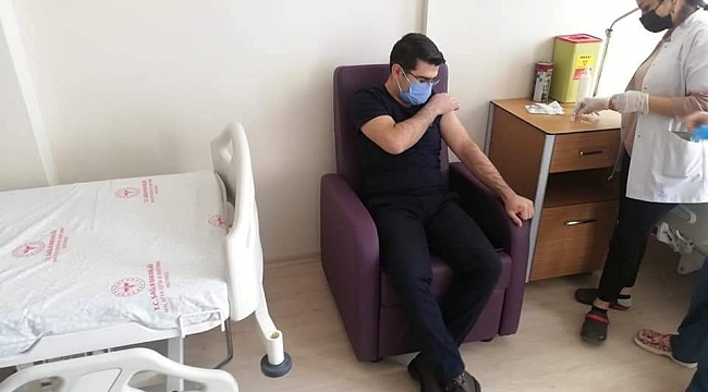 Malatya’nın Arguvan İlçesi Kaymakamı Gökhan Dolaş da, ilçe Toplum Sağlığı Merkezi'ne giderek korona virüs aşısı oldu.