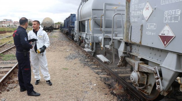 Kayseri'de, bir yük treninin taşıdığı vagondan sızan sülfürik asit, ekipleri alarma geçirdi.