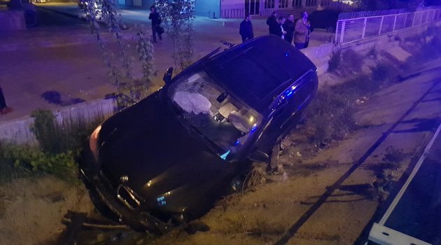 Kaza yapan araç bariyerin üzerinde süreklenip su kanalına düştü