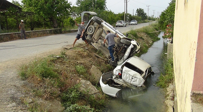 Kaza yapan araçlar kanala uçtu: 3 yaralı