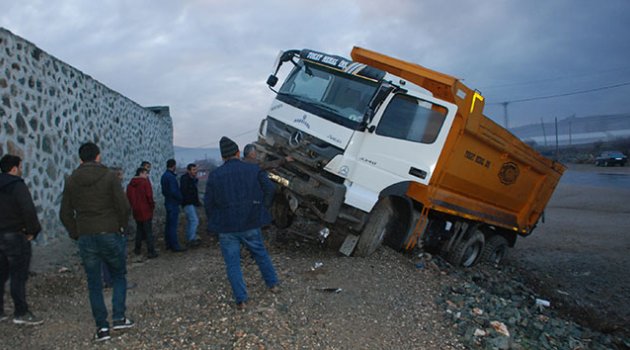Kaza yapan hafriyat kamyon duvara metreler kala durdu
