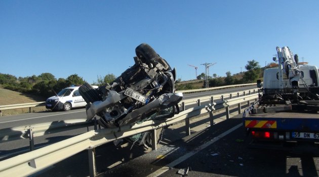Tekirdağ’da direksiyon hakimiyetini kaybedip kaza yapan aracı gören diğer sürücüler şok oldu.