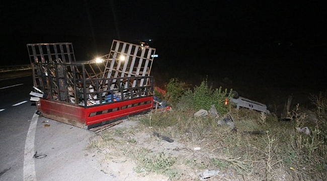 Kazaya karışan kamyon ikiye bölündü, iki araçta tarlaya uçarken 1’i ağır 3 kişi yaralandı.