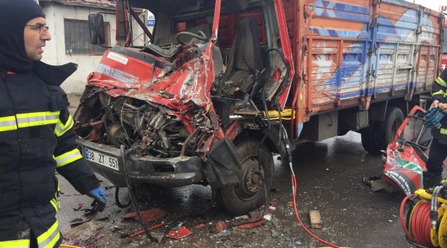 Edinilen bilgiye göre, Melikgazi ilçesine bağlı Anbar Mahallesi Altınoluk Caddesi'nde meydana gelen trafik kazasında 38 ZT 551 plakalı kamyon yolun yağışlı ve kaygan olması nedeniyle sürücünün direksiyon hakimiyetini kaybetmesi sonucunda 51 KJ 487 plakalı kamyona arkadan çarptı. Çarpışma sonrasında 38 ZT 551 plakalı kamyonun sürücüsü şoför mahallinde sıkıştı. Vatandaşların haber vermesi üzerine kaza yerine 112, itfaiye ve polis ekipleri sevk edildi.