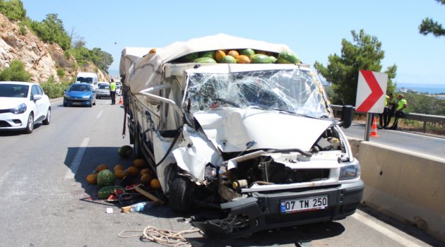 Edinilen bilgiye göre kaza, saat 10.30 sırasında Antalya-Kemer karayolu Tünektepe mevkiinde meydana geldi. Kemer istikametine su yüklü 20 F 8249 kamyonuyla seyir halinde bulunan Yılmaz Tanrıkulu, yol çalışması nedeniyle daralan yolda yavaşladı. İddiaya göre arkadan gelen sürücüsü belirlenemeyen karpuz-kavun yüklü 07 TN 250 plakalı kamyonet arkadan çarptı. Çarpmanın etkisiyle karpuz yüklü kamyon ağır hasar görürken, sürücüsü yaralandı. Bu kazaya bakarak ilerleyen karşı şeritteki biri tur minibüsü ile otomobil de arka arkaya kaza yaptı. Minibüste bulunan 3 Rus turist 6 kişi yaralandı. İhbarla bölgeye çok sayıda ambulans ve polis ekibi sevk edildi. Hafif yaralılar ambulanslarla hastaneye kaldırıldı. Yaralılardan birinin hamile olduğu öğrenildi. Kaza nedeniyle karayolunun her iki şeridinde de uzun araç kuyrukları oluştu. Yol kazaya karışan araçların kaldırılmasıyla trafiğe açıldı.