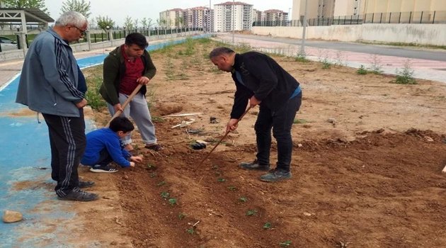 Site önünde yaklaşık 1 dönümlük yeşil alan olduğunu ancak şu an için vatandaşlara örnek olma adına küçük bir alanda ekim yaptıklarını belirten Karakaya, domates, biber, soğan, salatalık gibi sebze ekimi yaptıklarını söyledi. Bu şekilde en azından dışarıdan alma yerine kendi yetiştirdikleri ürünleri tüketeceklerini belirten Karakaya, “Türkiye tarım ülkesi, bizler üretmezsek olmaz. Her zaman üreteceğiz, konuşmayla peynir gemisi yürümez” diye konuştu.