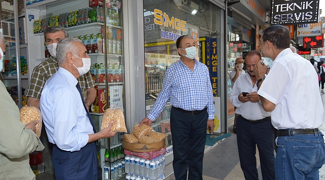 Malatya Esnaf ve Sanatkarlar Odaları Birliği (MESOB) Başkanı Şevket Keskin, Malatya Esnaf ve Sanatkarlar Kredi kefalet Kooperatifi Başkanı Ali Evren ile esnaf odası başkanları birlikte Turgut Temelli Caddesi, Bakırcılar Çarşısı ve Niyazi Mısri Caddesinin girişindeki esnafları ziyaret ettiler.