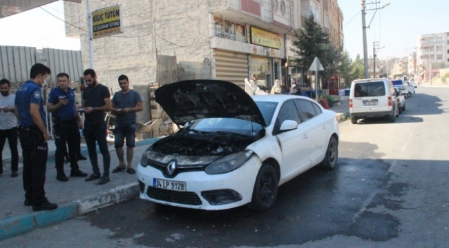 Şanlıurfa'da bir firmada kullanılmak üzere kiralanan otomobil, seyir halindeyken alev alarak kullanılamaz hale geldi.