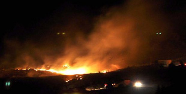 Patlamanın ardından çıkan ve ormanlık alana sıçrayan yangın yerleşim yerlerini tehdit ediyor.