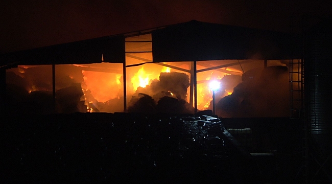 Yem deposunda çıkan yangında çok sayıda saman balyası kül oldu.