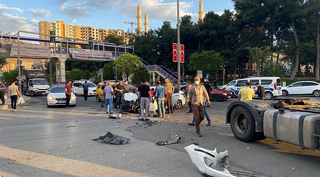 Mardin'de kırmızı ışığı ihlal eden tırın otomobil ile çarpışması sonucu meydana gelen trafik kazasında 2 kişi yaralandı.