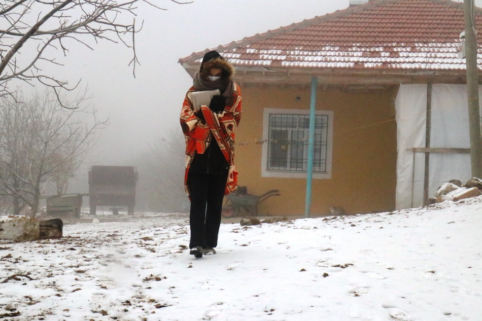 Köylerinde internetin çekmemesi nedeniyle her gün evlerinden yüzlerce metre uzaklıkta bir noktaya gitmek zorunda kalan öğrenciler, burada üzerlerine attıkları battaniyelerle soğuk kış günlerinde canlı derslerine girmek için uğraşıyorlar. Kırıkkale Üniversitesi’nde İçmimarlık bölümünde son yılını okuyan 21 yaşındaki Merve Kozan, kar yağışının olduğu bugünlerde, dersinin olduğu saatlerde köyde internetin çok az çektiği bir noktaya giderek eğitimini sürdürmeye çalışıyor. Her gün evden üzerine kat kat elbiseler giyerek çıkan Merve Kozan, üniversiteden bu yıl mezun olması için bu zorluklara katlandığını söylüyor.