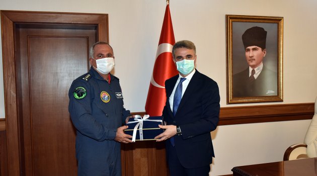 2020 YAŞ kararları ile görev süresi sona eren 7. Ana Jet Üs Komutanı Albay Hasan Hüseyin Kanbur Vali Aydın Baruş’a veda ziyaretinde bulundu.