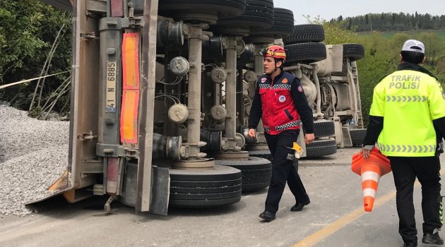 Sakarya’nın Kaynarca ilçesinde meydana gelen trafik kazasında sürücüsünün direksiyon hakimiyetini kaybettiği kamyon devrildi. Kazada 1 kişi yaralandı.