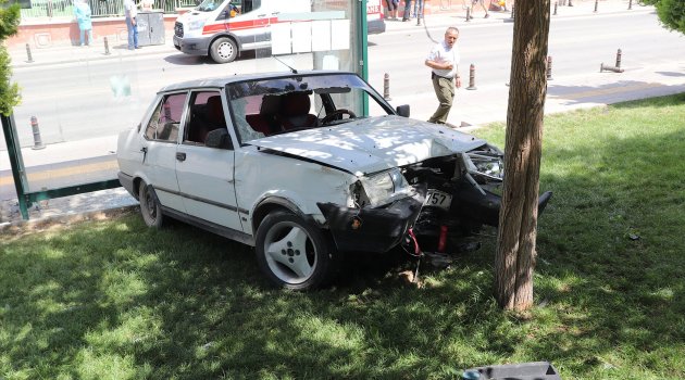 Karaman'da önündeki araca çarptıktan sonra kontrolden çıkan otomobil, önce kaldırımı aşarak parktaki ağaca sonra da otobüs durağına çarparken araçtaki 2 kişi yaralandı.