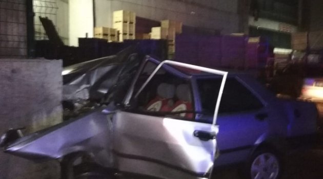 Kontrolden çıkan otomobil iş yerinin duvarına çarptı: 1 yaralı