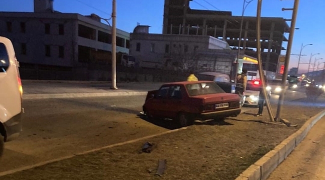 Kontrolden çıkan otomobil refüje çarptı