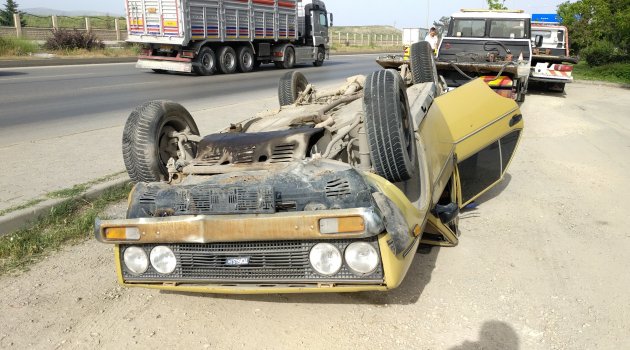 Eskişehir'de kontrolden çıkan bir otomobil refüje çarparak takla attı. Kazada hurdaya dönen otomobilin sürücüsü ise aracını bırakıp olay yerinden kaçtı.
