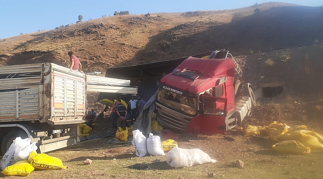Bingöl’de kontrolden çıkan tır devrildi, yemler etrafa savruldu. Sürücü yara almadan kazayı atlattı.
