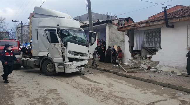 Bursa'nın İnegöl ilçesinde kontrolden çıkan tır bir evin duvarını yıkarak durabildi. Facianın eşiğinden dönülen kazada evde bulunan genç yaralandı.