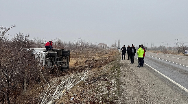 Malatya’da sürücünün kontrolünden çıkan kamyon devrildi. Kazada sürücü yaralandı.