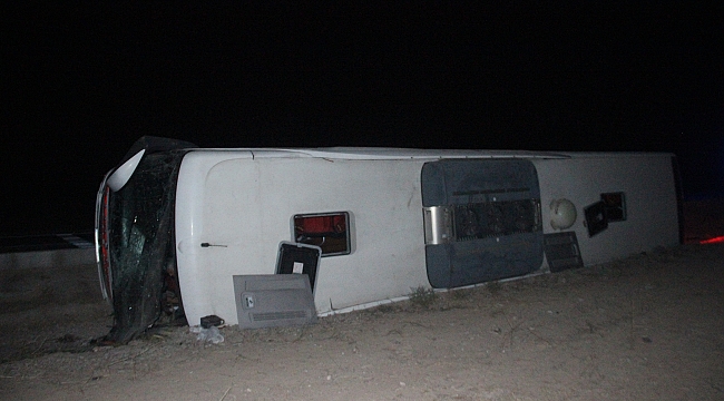 Konya'da kontrolden çıkan yolcu otobüsünün refüje devrilmesi sonucu 1'i ağır 14 kişi yaralandı.