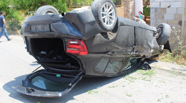Köpeğe çarpmamak için manevra yapan araç ağaca çarpıp takla attı
