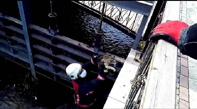 Olay, Şehit Hamit Fendoğlu Caddesi üzerinde bulunan su kanalında meydana geldi. Edilen bilgilere göre kanal içerisindeki demir korkulukların arasına sıkışan kediyi görenler durumu itfaiye ekiplerine bildirdi.