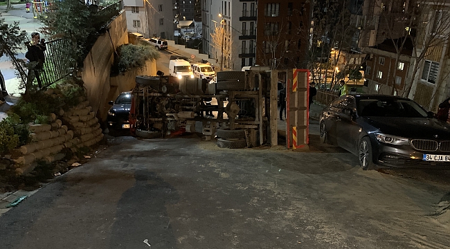 Edinilen bilgiye göre, sokak içerisindeki inşaat alanına gelen bir kamyon, kum boşalttığı sırada sokak içerisine devrildi. Olayda sokakta kimsenin olmaması yaralanmanın önüne geçerken, park halindeki lüks bir araçta maddi hasar oluştu. Kaza nedeniyle sokak araç trafiğine kapatıldı. İhbar üzerine olay yerine gelen ekiplerin yaptığı çalışmalar sonrasında kamyon, sokaktan kaldırıldı.