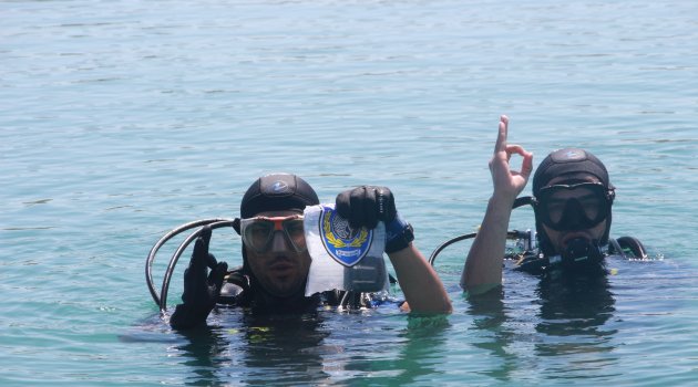 Kurbağa Adamlardan Polis Memuru Mehmet Ergene, “Her türlü sularda dalış eğitimini aldık. Elimizden geldiğince görevimizi yapmaya çalışıyoruz” ifadelerini kullandı.