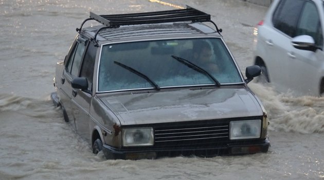 Kuşadası’nda gün boyu devam eden ve akşam saatlerinde etkisini artıran sağanak yağış nedeniyle yollar göle döndü, birçok ev ve iş yerini su bastı.