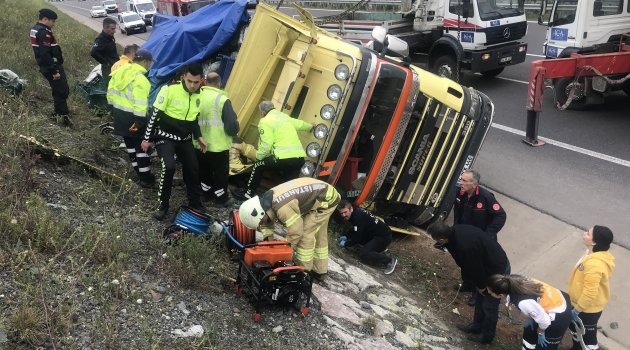 Kuzey Marmara Otoyolu'nda kamyon devrildi: 1 yaralı