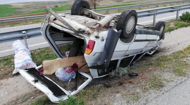 Lastiği patlayan otomobil refüje devrildi :1 yaralı