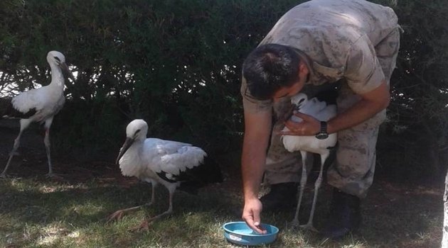 Yavru leylekleri Arguvan İlçe Jandarma Komutanlığına getiren ekipler, burada uzun süre aç kalan yavru leylekleri elleri ile besledi. Jandarmanın şefkatli kolları arasında bakımları yapılan yavru leylekler, daha sonra Doğa Koruma ve Milli Parklar Müdürlüğü ekiplerine teslim edilerek yeni yuvalarına doğru yola çıktı.