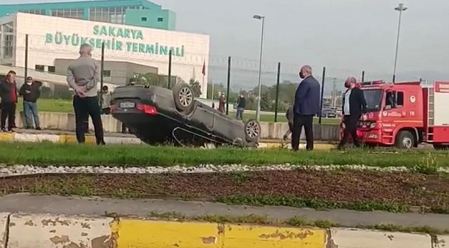 Kaza, Arifiye ilçesi Sakarya Büyükşehir Terminali önünde meydana geldi. Edinilen bilgilere göre, plakası ve sürücüsünün ismi öğrenilemeyen BMW marka lüks otomobil, sürücüsünün direksiyon hakimiyetini kaybetmesi neticesinde takla attı. Yolun ortasında ters dönen otomobilde ise ismi henüz öğrenilemeyen yaralı sıkıştı. Durumun haber verilmesi üzerine olay yerine sağlık, polis ve itfaiye ekibi sevke edildi. Olay yerine gelen itfaiye ekipleri, yaralıyı sıkıştığı yerden çıkartarak sağlık ekiplerine teslim etti. Yapılan ilk müdahale sonrasında yaralı hastaneye kaldırılırken polis ekipleri kaza ile ilgili inceleme başlattı.