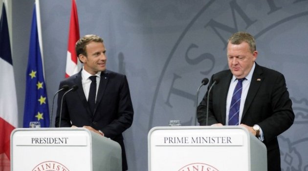 Fransa Cumhurbaşkanı Emmanuel Macron 3 günlük İskandinav ülkeleri turunun Danimarka durağında başkent Kopenhag’da Başbakan Lars Lokke Rasmussen ile görüşme gerçekleştirdi. Avrupa Birliğinin (AB) geleceği ve mülteci krizinin konuşulduğu görüşmenin ardından ikili basının karşısına çıktı. Basın toplantısında yaptığı konuşmada AB’nin vatandaşlarına daha yakın olması gerektiğini ifade eden Rasmussen, AB’nin ekonomik büyüme, iklim ve mülteci sorunu konusunda çözüm sunması, Avrupa değerlerini savunması ve vatandaşlarının güvenliğini sağlaması gerektiğini söyledi.