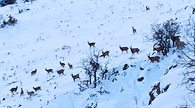 Kar kalınlığının yer yer bir metreyi bulduğu Sugeçti Mahallesi'nde bölge sakinlerinden Nihat Karaca tarafından cep telefonu kamerasıyla görüntülenen sürü halindeki yaban keçilerinin bir süre beslendikten sonra dağların kayalık ve yüksek kesimlerine doğru kaçarak bölgeden uzaklaştığı görülüyor.