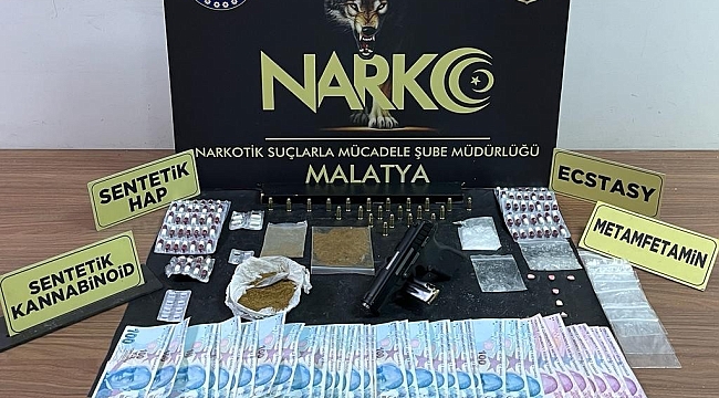 Edinilen bilgilere göre, İl Emniyet Müdürlüğü Narkotik Suçlarla Mücadele Şube Müdürlüğü görevlileri, uyuşturucu madde ticareti yaptığı değerlendirilen 2 zanlıyı yakalayarak gözaltına alındı. Zanlıların üst, ev ve araçlarında yapılan aramalarda 140 adet hap, 24.46 gram metamfetamin, 43 gram sentetik kannabinoid, 1 adet ruhsatsız tabanca, 30 adet fişek ile uyuşturucu madde ticaretinden elde edildiği değerlendirilen 4 bin 760 TL ele geçirildi.
