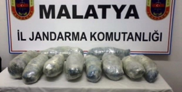 Malatya'da bir yolcu otobüsünde seyahat eden iki yolcunun bavullarında 5.5 kilo esrar ele geçirildi. Malatya İl Jandarma Komutanlığı ekipleri tarafından Malatya-Elazığ karayolunda yapılan yol kontrolünde bir yolcu otobüsünde arama yapıldı. Arama sırasında seyahat eden F.A. ve F.K. isimli şahıslara ait çanta içinde toplam 5,5 kilo kubar esrar ele geçirildi. Jandarma tarafından iki zanlının gözaltına alındığı ve tahkikatın sürdürüldüğü bildirildi